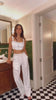 Introducing the Erryn 2.0 Set, featuring a crop top and semi-flowing, formal cut mid-waist trousers designed to elevate your style game. These trousers come with convenient side pockets and front darts for added functionality, complemented by the wide-leg design for a chic look. The set is expertly stitched in banana crepe fabric, showcasing the exquisite white rice stitch detailing personally designed by Jenn herself.