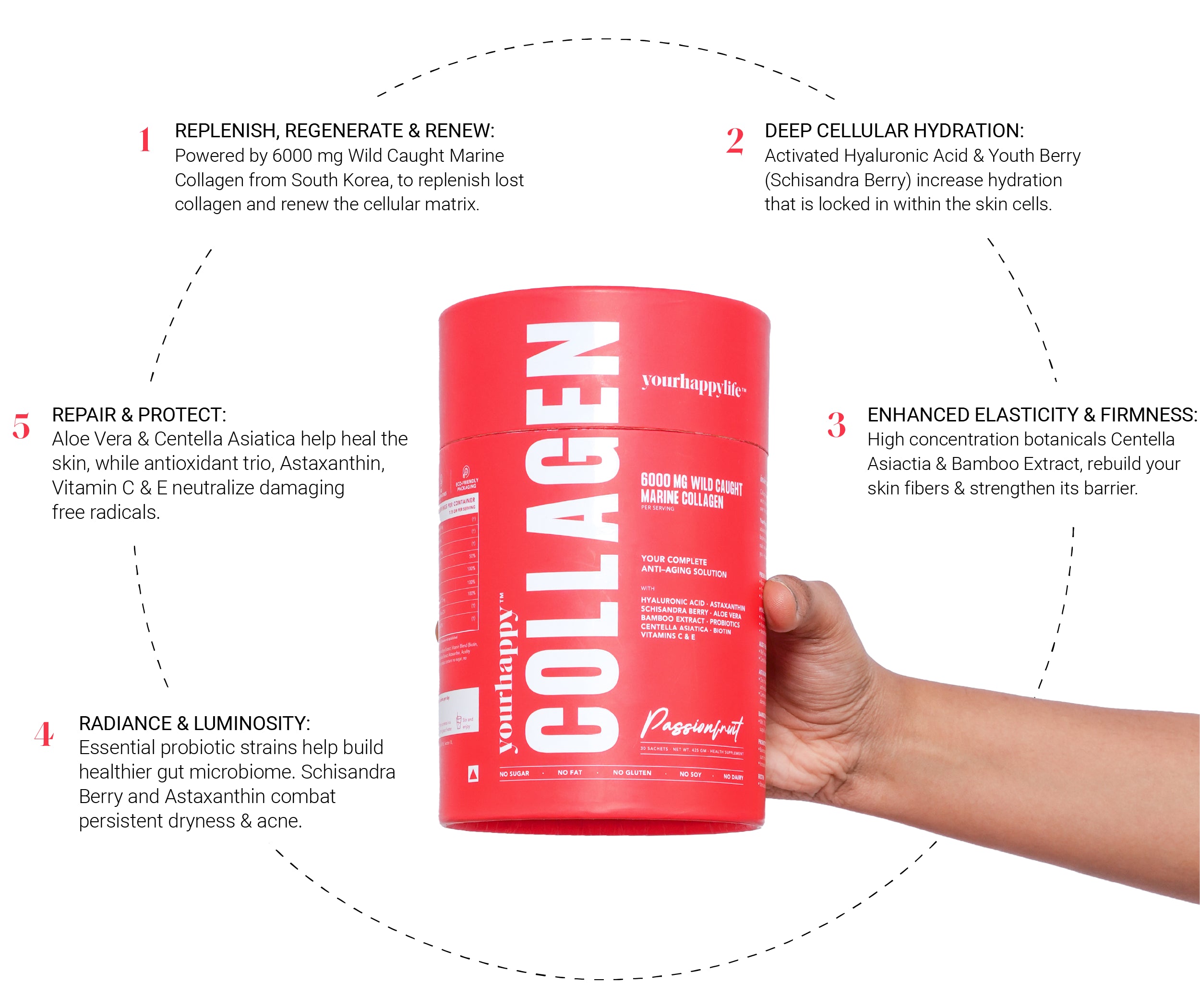 "Say goodbye to fine lines, wrinkles and say hello to hydrated, youthful skin with YourHappy Collagen" - ANUSHA DANDEKAR